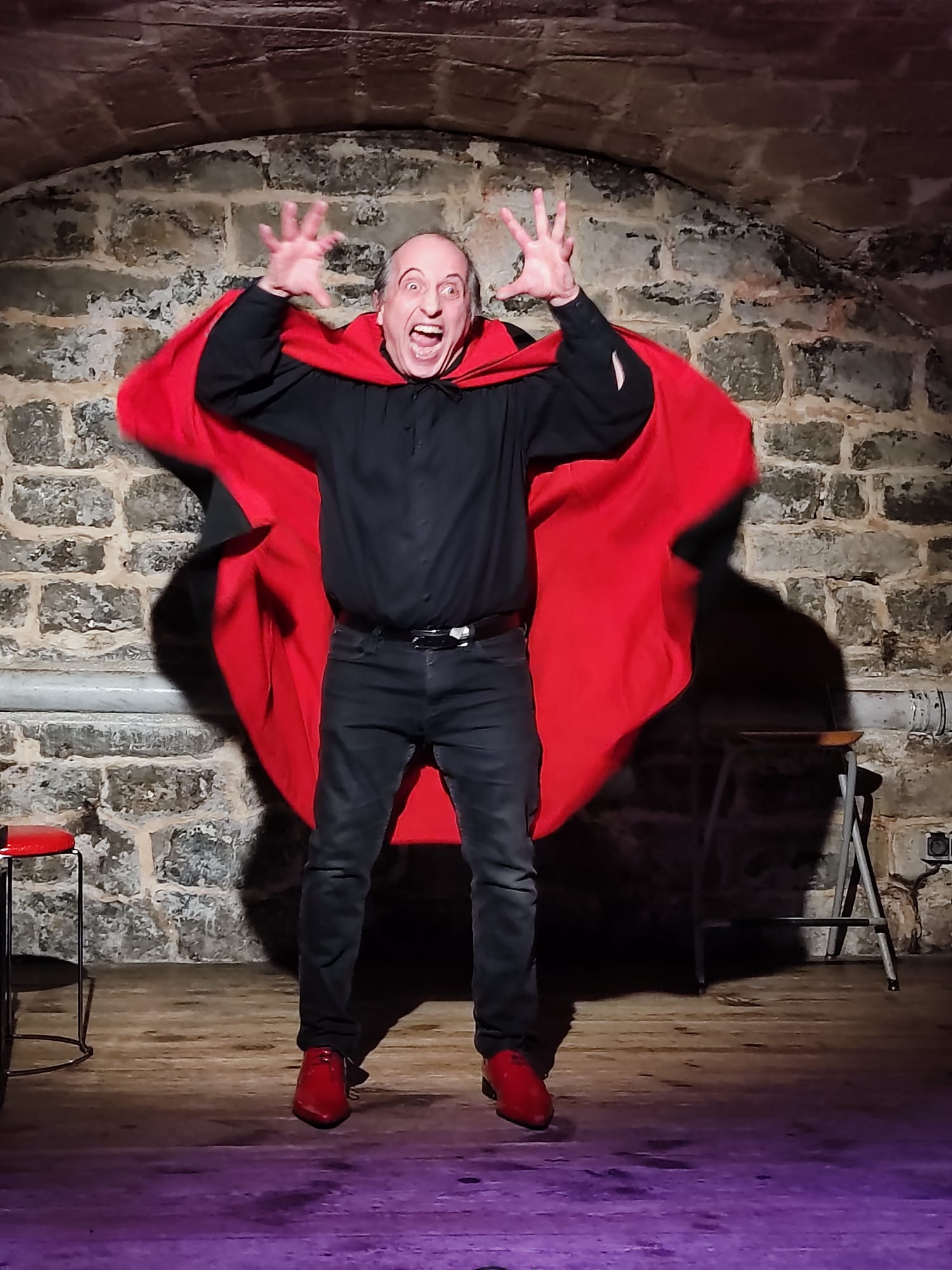 L'humoriste Laurent Simoni propose un sketch autour du personnage d'un vampire déprimé ... parce qu'il ne fait plus peur.